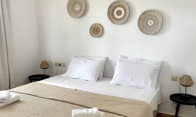 The holiday home Kythiris Studios - Bungalow 3 is located in Kalamos and boasts a beautiful view of the sea. The 50 m² property consists of a living room, a kitchen, 1 bedroom and 1 bathroom and can therefore accommodate 4 people. Additional amenities include Wi-Fi, a TV, air conditioning as well as a fan. This property features a private outdoor area with a covered terrace and balcony.