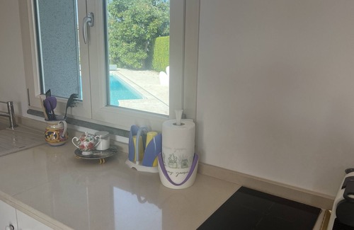 There are 5 parking spaces on the property. Free parking is available on the street. Families with children are welcome. Pets are not allowed. Wi-Fi is available and suitable for video calls. There are security cameras and audio recording devices. Parties are not allowed. Please do not invite external guests to the holiday home. The swimming pool is open from 9.00 to 19.00.