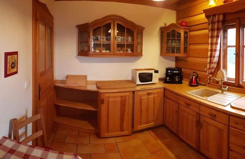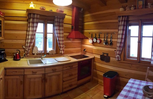The detached holiday home built in 2006 and is furnished in a rustic and typical country style. The property is located on the outskirts. Also due to the view over the mountains from the property and its quiet and sunny location at the edge of the forest the domicile is popular. Available for your exclusive use: parasol, sun lounger, children's playground, swing, sandpit, barbecue facilities, terrace, garden furniture and campfire site. Russian skittles. Steam sauna box for 2 people. Infrared sauna for 4 people. Security system of the object. Towels must be taken with you.LocationJílové u Držkova, 550 m above sea level. The holiday home is located on a 2000 sqm enclosed plot. The landlord does not live in the house or on the property. Access is via a path (asphalted). Parking (for 4 cars) is available on the property. Specialcentral heating (wood & coal), electric heating. tiled stoveFacilities: baby cot, high chair, internet access (WLAN), Wii and washing machine. TV reception takes place via electric wire. German broadcasts PoolAll pools are available for exclusive use. Children's pool (diameter 1,2 m, depth 0,3 m). WellnessSauna. Dogsallowed, EUR 40.00/pet per stay. DistancesShopping 500 m, restaurant 3 km, town center 500 m. indoor swimming pool in Jablonec nad Nisou 13 km. Main road 2 km. Children's playground 5 m. Pub 500 m. Liberec with aqua park, zoo, botanical garden and Ještěd lookout tower 28 km. In summer: Bathing possibility 200 m in Jílové u Držkov (beach featuring meadow). Jílové u Držkov: fishing 200 m and tennis 500 m. golf in Semily 18 km. Dam Mšeno 13 km. Fishing in the river Kamenice 5 km. Cycling and hiking trails in the area. In winter: Ski lift 4 km in Zásada. Ski area 8 km in Vysoká nad Jizerou. ski rental, ski school each 4 km in Zásada. Ski resorts Tanvaldský Špičák 12 km and Rokytnice nad Jizerou 20 km, ski resort Harrachov 25 km. DivisionHoliday home, 2 floors, 4 rooms (including 3 bedrooms), 120 sqm, in total 10 beds (including 3 additional beds). RoomThe entrance to your holiday home is at ground level.Ground floor: Living room with 2 additional beds on double sofa bed, sitting area, TV, fireplace, radio, DVD player, CD player and dining area. Kitchen with electric stove (ceramic hob, 4 plates), oven, extractor hood, dishwasher, fridge (icebox), microwave, coffee machine, toaster and electric kettle. Bathroom with bathtub, washing machine, 1 washbasin, WC, hairdryer and window. Upper floor: Bedroom with 3 single beds and 1 additional bed. 2 bedrooms each with 2 single beds. Bathroom with shower, 1 washbasin, WC, window and Steam sauna, hydromassage shower. Towels must be taken with you. Terms of lease and pricesIncluded in the pricesauna, internet access, baby cot, parking place, sauna, water, final cleaning, bed linen, sunloungers, Wireless Internet access. Side costs-Additionally(Payable when booking)/additonal fee for short-term stays (less than 4 nights) obligatory 40% per stay.Costs on the spot:/Obligatory:electricity 0,40 € per kilowatt hour based on usage. hand towels to bring along. local tax by local tariff.On request:chimney wood 6 € per package based on usage.Deposit:EUR 150,-/object
