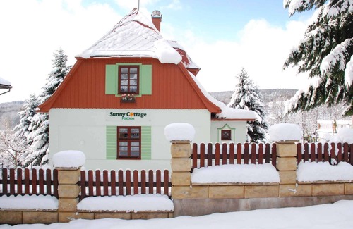 The holiday home is furnished in a functional style. Also due to its quiet location the domicile is popular. Available for use: garden furniture and campfire site.LocationSvoboda nad Úpou. The house is located in a residential area. Snow chains are mandatory in winter. Parking is available on the property. Specialcentral heating. TV reception takes place via satellite. Dogsallowed, EUR 7.00/pet per day. DistancesShopping 400 m, restaurant 400 m, town center 400 m. Svoboda nad Úpou: indoor swimming pool 3 km and railway station 400 m. Bowling 500 m. Table Tennis 1000 m. Bus station 400 m. In winter: Ski area 2 km in Svoboda nad Úpou. Public bus stop 400 m. DivisionHoliday home, 2 floors, 4 rooms (including 3 bedrooms), 90 sqm, in total 10 beds (including 2 additional beds). RoomGround floor: Bedroom with 1 double bed. Living/bedroom with 2 additional beds, TV and radio. Kitchen with dining area, electric stove, oven, fridge, microwave, coffee machine and electric kettle. Bathroom with bathtub. Separate toilet with WC. Upper floor: 2 bedrooms each with 3 single beds. Cooking nook with coffee machine and electric kettle. Bathroom with shower and WC. Terms of lease and pricesSide costs-Costs on the spot:/Obligatory:electricity 0,16 € per kilowatt hour based on usage. final cleaning 50 € per object per stay. hand towels to bring along. local tax by local tariff.Deposit:EUR 150,-/object
