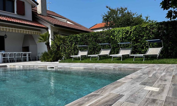 Holiday home with swimming pool is located in Isola Albarella. Holiday home with swimming pool provides accommodation, featuring Air Conditioner, Parking, Balcony/Terrace, among other amenities. This House features Air Conditioner, Parking, Balcony/Terrace, to make your stay a comfortable one.