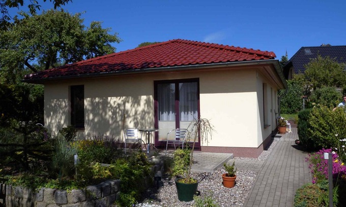 The holiday home built in 2002, was renovated in 2009 and is furnished in a modern and functional style. The property is located in the town centre. Also due to its quiet and sunny location the domicile is popular. Available for your exclusive use: sunbathing lawn, parasol, sun lounger, children's playground, swing, barbecue facilities, terrace and garden furniture.LocationBergen auf Rügen. The holiday home is located on a 1000 sqm open garden plot with meadow, flowers, shrubs and trees. The landlord lives permanently in a separate building on the property. Centrally located in a residential area with detached houses and their gardens. Parking is available on the street in front of the house. Specialcentral heating (gas).Facilities: internet access (WLAN). TV reception takes place via electric wire. Leisuretable tennis. Dogsnot allowed. DistancesShopping 500 m, restaurant 500 m, town center 500 m. Bergen auf Rügen: railway station, sauna, discotheque each 1000 m. cinema 2 km. indoor swimming pool in Samtens 10 km. Main road 200 m. Kap Arkona at 40 km, Stralsund with many leisure activities at 36 km, ferry to Hiddensee leaving in Ralswiek at 6 km, high ropes course at 3 km, dry toboggan run at 3 km. In summer: Großer Jasmunder Bodden 10 km (beach featuring sand). Baltic Sea with sandy beach in Prora at 16 km, Störtebeker Festspiele from end of June until beginning of August in Ralswiek at 6 km. DivisionHoliday home, 1 floor, 2 rooms (including 1 bedroom), 70 sqm, in total 3 beds (including 1 additional bed). RoomThe entrance to your holiday home is covered and at ground level and leads directly into the hallway with wardrobe and doors to all rooms. Living room with on couch/sofa, sitting area, TV and radio. Bedroom with 1 double bed and 1 additional bed on folding bed (only suitable for children). Kitchen with dining area (4 seats), electric stove (ceramic hob, 4 plates), oven, extractor hood, dishwasher, fridge, coffee machine, toaster and electric kettle. Bathroom with bathtub, washing machine, shower, 1 washbasin, WC and window. Terms of lease and pricesIncluded in the priceparking place, electricity, water, heating, bed linen, Wireless Internet access. Side costs-Costs on the spot:/Obligatory:final cleaning 40 € per object per stay. hand towels to bring along.Deposit:EUR 100,-/object