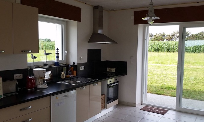 Holiday house by the sea in Audierne bay is located in Plovan. Holiday house by the sea in Audierne bay provides accommodation, featuring Kitchen, Parking, View, among other amenities. This House features Kitchen, Parking, View, to make your stay a comfortable one.