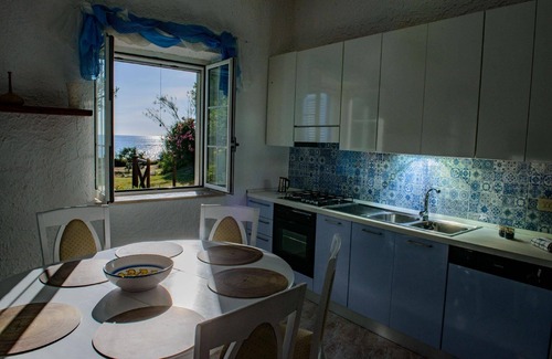Once inside the villa, the blue of the sea is reflected in the furnishings that characterise this exclusive building. From the large living room with sofa, covered with soft cushions, one can see the sea. It will be a pleasure to have meals with a magnificent view of the blue sea. The fully equipped kitchen is equipped with oven, fridge and dishwasher. The refined majolica tiles on the hob reflect the sun's rays and illuminate the room. To enjoy a midday nap and above all to recharge your batteries after a beautiful day at sea, the villa has two elegant bedrooms with double beds. One of the rooms is also equipped with a single bed so that the rest of a child can also be controlled. A third room with a single bed is ideal to accommodate the rest of a child on holiday with the family. The villa has two bathrooms with shower and washing machine.