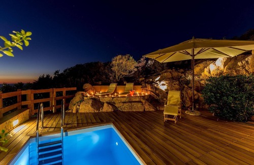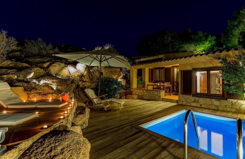 The holiday house is just 900 metres from the sea, nestled into the lush green landscape of the Costa Paradiso.