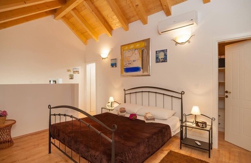 The villa was completely renovated, the whole property is surrounded by wall providing you a full privacy, with two parking spaces inside courtyard, outdoor shower, sun deck and terrace around the swimming pool area of 32 m2, Pool has hydro massage and different lighting in the pool in multiple color. Also it is heatable swimming pool on May, September and on October. For your entertainment and active vacation, spacious swimming pool has pool volleyball equipment. Next to the house is a covered stone barbecue. Guests can use the free three mountain bikes to look around or going for groceries.