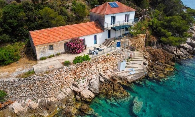 House is decorated in a minimalist and Dalmatian style with spacious three bedrooms on the first floor and one bedroom, kitchen and store room in the ground floor. In front of the house there is spacious terrace with beautiful view on the bay, sea, stony beach and most beautiful sunsets.Two bedrooms have one double, one bedroom has two single and one bedroom has one double bed and one single bed, so there are nine beds with possibility of one extra bed.The house has one toilet.There is no electricity and no water in whole bay so house has gas stove and oven. The fridge runs on solar energy. Lights and eletrical outlets which you can use for charging batteries for mobile phone and notebook are in every room and are also supplied with solar electricity.Water is supplied from the well which is in front of the house and you can take it with bucket. In toilet water is used from cistern with free fall. Shower is outside of the house and you have also an shower paravan.The house is perfect for people who like robinson turism in a beatiful nature on the sea.The guest have full access to entire house. Our guests are always greeted with a big smile and on arrival we will present the whole house and , of course, we are available to give You ideas and informations about area and features and also any kind of questions You may have.