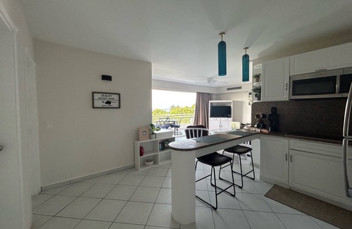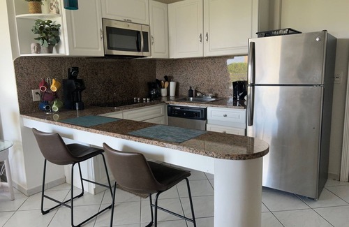 This bright apartment is perfectly located in sought-after area of Cupecoy, just 3 miles from Princess Juliana International Airport, Maho beach and is in walking distance to bars, restaurants, and grocery stores.