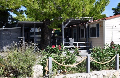 Seafront overlooking the sunset on the calmest square is from Camp this extraordinary mobile home, what with all you need for a relaxing holiday. Adjacent is a nice little bay with gently sloping fine gravel beach.