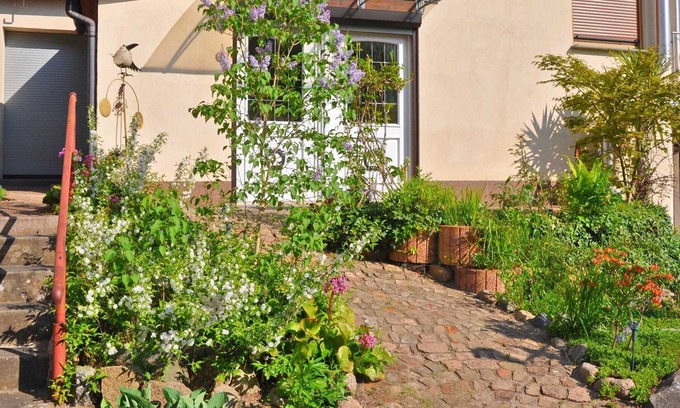 The house is located separately on about 1800 square meters and completely fenced residential land from the owner with very well-kept garden in rococo style, right on the river Rhin. From the property can be entered directly into the river to swim. A restaurant, a supermarket, a bakery, the famous castle and the train station are within a few hundred meters. The approximately 54 square meters large holiday home offers space for up to 4 people (including 1 infant up to 2 years) and extends over two floors. In the lower level there is a living room with fireplace (firewood incl.), Sofa bed, armchair, flat-screen TV, radio with CD player, dining area and access to the terrace. About a small staircase is the open kitchen area with stove and oven, refrigerator, freezer, microwave oven and div. Kitchen appliances and a separate toilet to reach. Via another staircase leads to the upper floor with a double bedroom and a bathroom with toilet and shower. The house is equipped with insect screens on the windows and central heating. Smoking is allowed only outdoors. Also available: free Wi-Fi, cot, high chair, furnished terrace with barbecue, 2 sun loungers, garaging for bicycles, 2 bicycles (3 EUR / day per bike), parking. The owner offers special guided tours on a classic car by Rheinberg. These can be booked on site. The total price includes final cleaning, water and energy consumption, bed linen and towels. To be paid on site: tourist tax