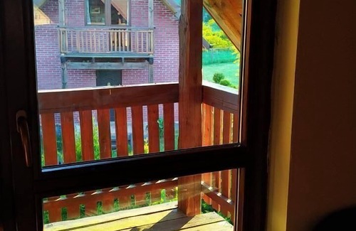 In the area there are three "twin houses "Two stone and one log.A log house has the unique atmosphere of a country house with all the equipment you need to spend time with your family.Brick houses have their unique charm, brick gives warmth and character.Each segment of the house has a floor on which there are two bedrooms, one with three single beds, the other with a double bed and one with a balcony. At the foot of the houses there is a living room with kitchenette and bathroom. In the living room you can light a goat and have a good time on rainy evenings.In each house guests have at their disposal a brick barbecue, wooden benches and deckchairs that can be taken to the beach, as well as bicycles for the whole family;)The property is extensive, which means that our guests have space and freedomWe provide an intimate atmosphere away from crowded and cramped facilities. We want you to take a break from a fast-paced life in a quiet and safe environment.Every year we make changes for the better by listening to our guests' suggestions.Don't wait and relax "Under Sumakiem "We invite you and wait