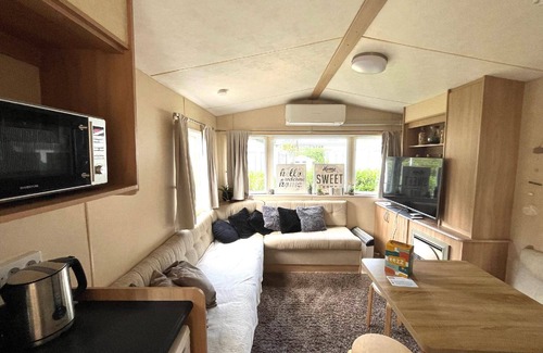 The accommodation features a well-equipped American-style kitchen with essential amenities including a fridge, freezer, coffee machine, kettle, and kitchenware. You'll enjoy modern comforts like air conditioning, electric radiators, and complimentary WiFi. The sleeping arrangements include one double bed and two individual beds, ensuring a good night's rest for everyone.