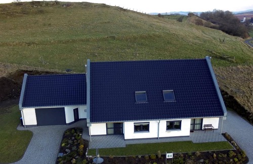 The house was completed in the spring of 2011 as a complete new build. It was built with a wood frame, with modern insulation and an open layout, exuding a pleasant and homely atmosphere. It is also a low-energy house that meets the latest ecological residential standards. It is fully-furnished and provides everything you need for a pleasant stay. The solid beams and wooden ceiling give the house a special flair. There is an open living room and kitchen in one big room. If the temperamental Eifel weather should strike, you can make yourselves comfortable in front of the wood-burning stove. Wood is provided. A sofa, armchairs, a radio and TV are also provided. The living room has a great view over the volcanic landscape and the volcanic garden, as well as the locality. The fully-equipped, modern kitchen provides plenty of space for cooking and spending time together. It has a ceramic hob and oven, a fridge with a freezer compartment and a dishwasher. Wooden stairs lead to the upper floor. All the rooms are laid with tiles or laminate flooring and have under-floor heating. The house has three separate bedrooms and can accommodate two to six people. The lower floor has a double bedroom with an adjoining terrace. Two further bedrooms on the upper floor make this house attractive for families. The ground-floor bedroom has a double bed, while the other two upstairs each have two single beds. You will enjoy a good night’s sleep in these comfortable rooms. The bathroom has modern fittings and has a bath, a barrier-free shower, a WC, a big washbasin and a washing machine. A sauna awaits you in the house as a little highlight, which you can share use of free of charge. Fresh bath, hand and kitchen towels are provided, as well as bed linen.