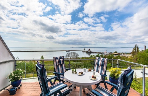 The 60 m ² large and 4 DTV stars classified apartment 4 is located on the left upstairs in the house Trelleborg. It offers with its three rooms enough space for up to 4 people. The locationSituated in a quiet location at the end of a side street, Apartment 4 is located in the Trelleborg holiday home, less than a 10-minute walk from the nearest supermarket. You have from the balcony a wonderful sea view of the port of Sassnitz. The apartment has a living area with an open kitchen, a bedroom, a children's room, a bathroom with shower and a balcony. Comfortable upholstery sets and a flatscreen TV invite to convivial evenings in the spacious living area. The dining area is integrated in the living area and a table with 4 chairs offers enough space for eating together. The adjacent kitchenette is equipped with a fridge-freezer, a dishwasher, an oven with ceramic hob and a microwave. A coffee machine, a toaster, an egg cooker and a kettle are of course at your disposal here. In the bedroom, a box spring bed provides enough space for a restful sleep. You can store your holiday clothes in the spacious wardrobe. The children's room in the attic is accessible via an internal staircase and offers 2 more sleeping possibilities. The bathroom is equipped with a shower and toilet. In the closets you have enough storage space for your washing and cosmetic utensils. After a fun-filled day, let the evening fade away on the balcony and enjoy the direct view of the sea. On request, we provide a cot and a high chair free of charge. To this apartment belongs a free parking space directly at the house. The special featuresIn this non-smoking apartment, pets are welcome. Bed linen and towels are included in the original equipment. Your beds are already made upon arrival. In the basement area, guests can relax in the on-site sauna, while children can play table tennis, darts or table football. The laundry room has a washing machine and dryer for a fee. On the day of arrival, have your dinner and breakfast delivered directly to the fridge of your holiday apartment. Before you arrive. Order your enjoyment package from our cooperation partner Der Ostsee-Genuss. For fresh bread for breakfast you can take our bread service at an additional cost. Talk to our guest service gladly.