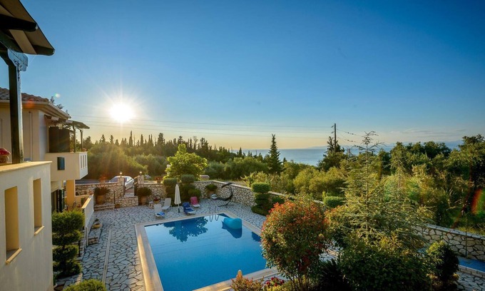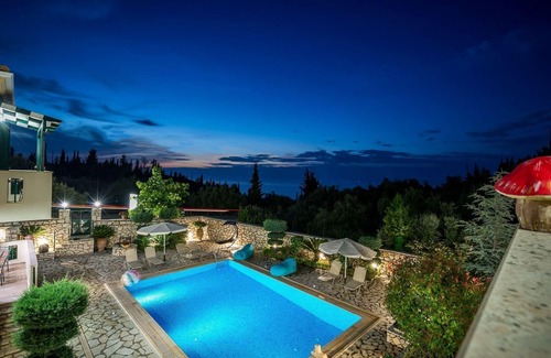 Detached holiday villa on a private land, with a private, illuminated swimming pool and sea view balcony, only 3 km from the beach This is one of two fully detached holiday villas, each with a private swimming pool. They are located approximately 3 km from Agios Nikitas and Kathisma village, northwest Lefkada, Ionian islands complex. The two twin villas are built on a 1500 m² land with no other constructions at a visual distance and therefore guaranteeing your privacy and independency.