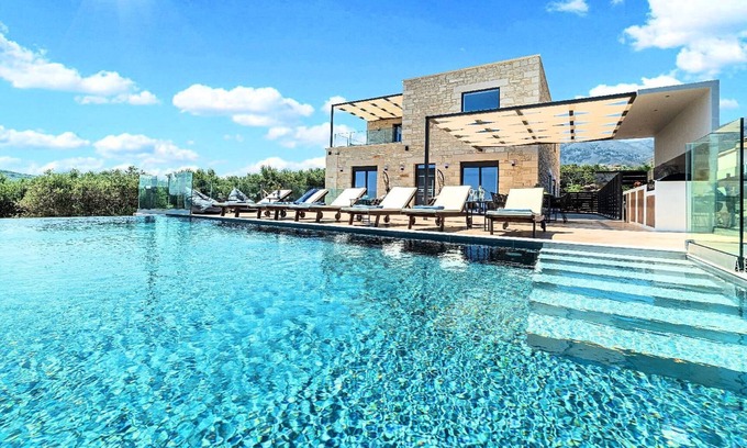 Welcome to a modern Villa with hotel facilities next to the Longest sandy beach of Georgioupolis. Inspired by the amber light of the sun rising above the Villa. We created a holiday treat for all your senses. The comfort, the unique allure of the landscape, the privacy, the tastes, wonderful sunsets are just some of the elements that will make your holidays in Crete utterly beautiful and unforgettable.