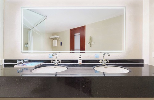 Holiday Inn Express Dalian City Centre by IHG offers 343 accommodations with minibars and safes. Beds feature premium bedding. A pillow menu is available. Refrigerators and coffee/tea makers are provided. Bathrooms include shower/tub combinations with hydromassage showerheads, slippers, complimentary toiletries, and hair dryers.