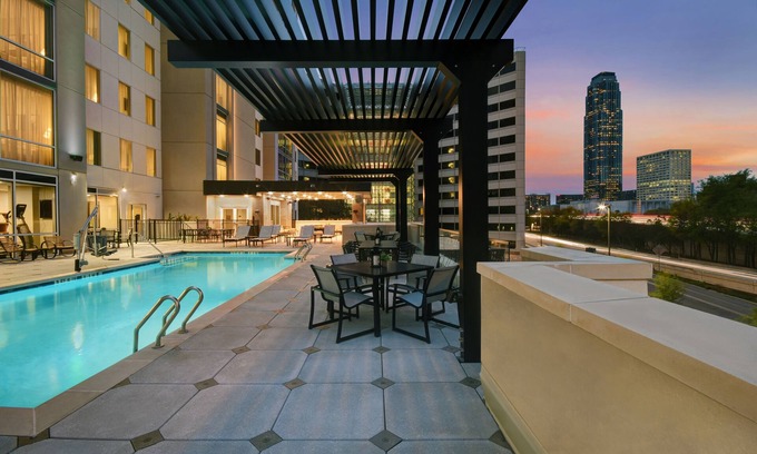 Recreational amenities at the hotel include an outdoor pool and a 24-hour fitness center.