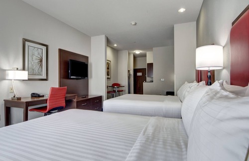 Holiday Inn Express & Suites Oklahoma City North by IHG offers 77 air-conditioned accommodations with coffee/tea makers and hair dryers. Beds feature pillowtop mattresses. Refrigerators and microwaves are provided. Bathrooms include shower/tub combinations and complimentary toiletries.