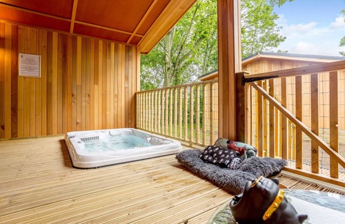 Perfect for couples and their pooches! Modern, spacious, contemporary, pet-friendly lodge furnished to a high standard set. Spoil yourselves and your pets with a spacious kingsize bed with TV and en-suite shower and bath. Open plan kitchen/living space. Outdoor covered hot tub. Fully enclosed decking with gate. TV with selected Freeview channels Kitchen including microwave, fridge/freezer, tumble dryer and washing machine Bath and/or shower Bed linen, duvets and towels Beds made up for your arrival Verandah Double glazed and centrally heated Gas and electricity included Welcome pack; Tea, coffee, milk, sugar and complimentary toiletries All non-smoking accommodation