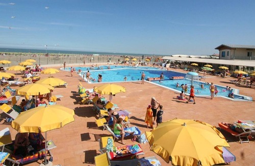 The property is located in the family-friendly holiday complex Villaggio Turistico Rosapineta Sud. This is located directly on the Adriatic Sea in the small town of Rosolina Mare. The complex offers various advantages for young and old: great pool area, playgrounds, animation, mini club, sport and not to forget a beautiful, gently sloping sandy beach. There are different pools for every age group. The little ones can linger in the paddling pool, while the adults can make themselves comfortable in the heated massage pool. The great animation team and the mini club invite their children to a world full of games, music and dance. If you need to run errands or wash clothes, you will find everything you need in the facility. WiFi is available free of charge. The mobile home C5 / 2870) offers space for max. 5 people. It has a bedroom with a double bed and a children's room with two single beds. The sofa bed in the living room offers another sleeping option. The living room is equipped with a satellite TV. The well-equipped kitchen corner has a stove, dishes, cutlery, pots, microwave and a refrigerator with an ice compartment. The bathroom is equipped with a shower, toilet and sink. The covered terrace with table and chairs invites you to relax in comfort while the children can let off steam in the playground or by the pool. Air conditioning / heating and a parking space are also available free of charge. Barbecuing is allowed with charcoal, either you bring your own barbecue or use the four public barbecue areas. Another advantage: the price also includes an umbrella and two deck chairs on the beach. So you do not have to carry heavy things to the beach or pool, but can lie comfortably on loungers already set up. Travel time from the Italian border approx. 4 hours. Note: If you need more than one accommodation, this is usually possible with us, since we have several objects of the same house type. ARRIVAL DAY + DURATION OF STAY In the period from 06.06.-04. 09. 2020 the arrival and departure day is Saturday (only bookable on a weekly basis). In the period from May 30th to 26th 06. 2020 the arrival and departure day is Saturday or Wednesday (minimum stay 7 nights). In the rest of the time, the minimum stay is 4 nights (daily arrival possible). Note: If for any reason you are unable to arrive on the day of arrival, check-in is also possible the following day (please notify us prior to arrival). The same applies if you want to leave earlier. Departure is also possible here the day before. However, the rental period / rental price specified for booking remains unchanged. The resort is located directly on the golden sandy beach, which is very gently sloping and therefore ideal for families with small children. The beach is reserved exclusively for guests. You will find plenty of entertainment on the beach! A great playground, sports facilities, animation or a cozy swim. You will definitely find something for your taste. One umbrella and two deck chairs are reserved for you on the beach. Thanks to wide pavement slabs up to the parasols, the beach is also easy to reach with a pram. POOLs have a great pool for holiday guests. This was divided into several areas so that everyone really had their fun. There is a children's pool with a water feature, a pool for adults and older children as well as a heated massage pool. Around the pool area you will find deck chairs for free use. LOCATION The holiday village borders directly on the beach and is therefore ideal for families with small children. The city center of Rosolina Mare is about 5-10 minutes on foot. Rosolina Mare has a large selection of shops, restaurants and gelaterias. A wide and family-friendly promenade and a park can also be found in the center. In the evening you can end the day comfortably by visiting a pub or watching the performances by the numerous street artists. FAMILY FRIENDLY The holiday village is very family-friendly and has several playgrounds and a children's pool. Here your children can play freely and freely under the shade of pine trees or on the beach with new friends. For children from 3 to 12 years the holiday village offers a special mini club with trained animators. Together with the motivated animation team, sand castles are built, various types of handicrafts are carried out and the playground is also accessible. The little ones will have a lot of fun with the treasure hunt and the children's disco. There is something for everyone! Would you like to relax and switch off from everyday stress? The Villaggio Turistico Rosapineta Sud offers you the opportunity to do this in your own wellness center. LEISURE AND SPORTS A qualified animation team, young and with the desire to entertain you during your vacation, is there for you every day. From morning gymnastics to gymnastics on the beach and in the pool to sports tournaments such as beach volleyball, beach football, table tennis and singing and dancing, the animation team does everything to make your vacation as entertaining as possible. Evening parties for young and old in a cozy and exuberant atmosphere let you quickly make new friends in the evening. Dance evenings, cabaret, musicals, parties with fire-eaters and fireworks should make your vacation unforgettable. A bike rental allows you great bike tours. In the new fitness center, which is available to guests free of charge, you can continue your fitness program while on vacation. It also has devices that are designed to help you escape everyday stress and keep yourself in shape. Even beginners who want to get to know this type of sport and relaxation will find something for themselves in the fitness center. SHOPPING Holiday park has a small supermarket where you can find everything you need for your vacation. If you would like a larger supermarket, you can find one in Rosolina Mare, which can be reached in about five minutes. CATERING The apartment has a well-equipped kitchen with cooker, dishes, microwave, cutlery, po