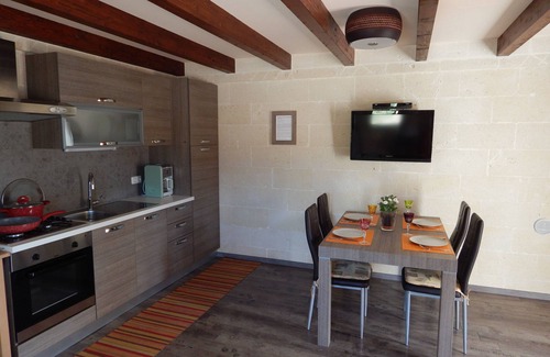 Our luxurious and lovingly restored, barrier-free "Trullo", the typical cottage, has bedrooms and living room, a fully equipped kitchen and a bathroom with shower and toilet.