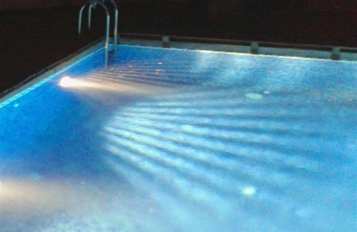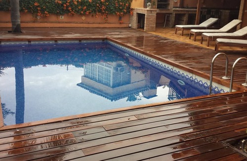 The pool is 8X4 meters with 6 sun beds and direct access to downstairs living room. The depth varies from 180 cm to 160cm