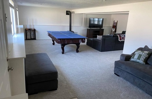 Our house is truly a home away from home with a perfect mountain view. Perfect for any long-term stay with every amenity covered with easy access to Salt Lake City, Ogden, or skiing areas. It has a fully stocked kitchen, large yard with playground equipment, outdoor grill, two car attached garage, spacious walkout basement with pool and ping pong table, kids' gear, toys, and equipment for babies (high chair, baby gate, baby bath, seat, bassinet, and pack-n-pay).
