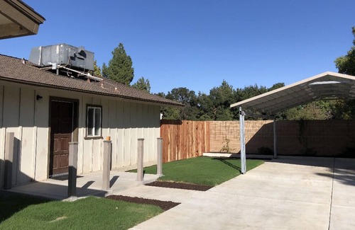 Spacious 1180 Sq Ft Mother in law apartment (separate from main house) quiet, secluded, fully furnished. Apartment sleeps 5, has 1 bedroom with 2 queen beds. 1 restroom with stand up shower (no tub), full kitchen, living room, and dining room. Cable TV and Wifi included. Centrally located. Private parking available right next to apartment. Close to shopping, freeways, SaveMart Center, Yosemite, mountains, lakes, ski resorts, casinos and Sequoia National Park.