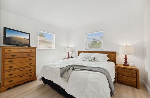 Everything you need is within a 10-minute radius: Downtown Jensen Beach, the Marina, Golf Course, The Treasure Coast Mall, Downtown Stuart, and the iconic Roosevelt Bridge. Indulge in a variety of dining, shopping, and entertainment options— the longer the stay, the lower the rate! Daily, weekly, and monthly. Washer and Dryer in Unit. Utilities included