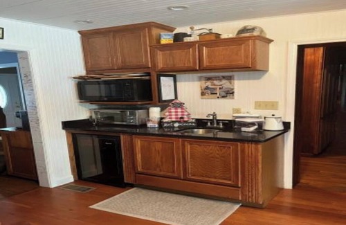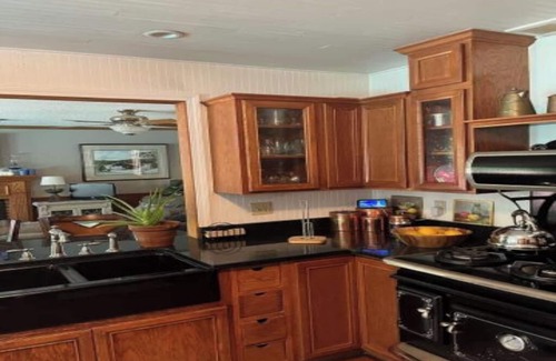 Guests will also greatly appreciate the many gathering areas inside the house including two living rooms, a family room, separate dining room and eat-in kitchen with pass-through bar seating. Kitchen has two sinks and granite counters for easier meal preparation. The beautiful antique replica stove boasts of both a four burner gas top over a convection equipped electric oven with hood. There is a microwave station in the kitchen as well as a coffee station in the adjoining dining room.