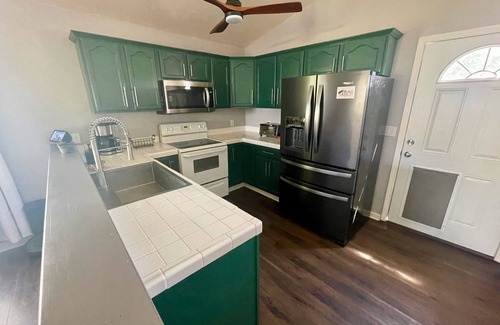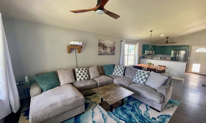 Experience comfort in this spacious Alpine home, perfect for families and pets. Enjoy a full kitchen, cozy beds, and a large couch. Unwind with movies on a 120" laser projector with surround sound. The fully fenced backyard offers a safe space for your pets to explore.