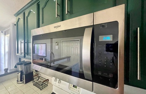 Retreat to the spacious master bedroom with a king bed and an en-suite bathroom featuring both a shower and bathtub. Nearby, the cozy guest bedroom offers a queen bed and close access to another bathroom. Both bedrooms include wall-mounted TVs for movie nights. The third bedroom, equipped with a twin XL bed, doubles as an office with an adjustable desk for standing or sitting.