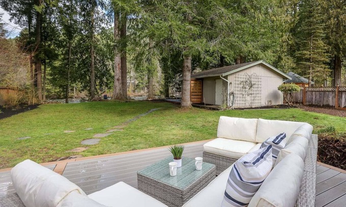 Home with 3 Bedrooms and Studio Cottage both Included. Sleeps 9. Directly On The River | House in North Bend