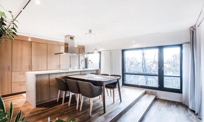 Best-rates for the Kluuvi apartment starts from $374 per night with includes Wheelchair Accessible, Balcony/Terrace, Sports/Activities, Fireplace/Heating, Parking, Accessibility, Security/Safety, EV Charge Station, Wellness Facilities, Guest Services, Child Friendly, Internet With all other amenities. Float Homes offers a wide range of floating homes, houseboats, and water chalets, ensuring each traveler finds their ideal water escape, whether planning a water getaway, a family vacation, or a pet-friendly retreat with the whole group.