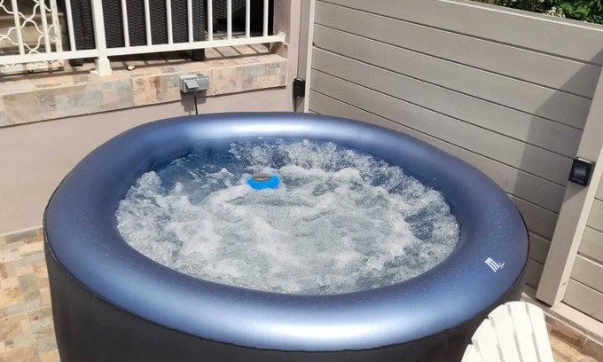 - Enjoy relaxing moments in the inflatable jacuzzi for 4.