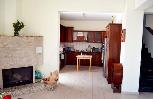 This house's living spaces are welcoming and functional, including a large living room with a fireplace, perfect for relaxing after long sunny days. The fully equipped kitchen is designed to make meal preparation enjoyable, with a kitchen table ideal for sharing delicious moments together.