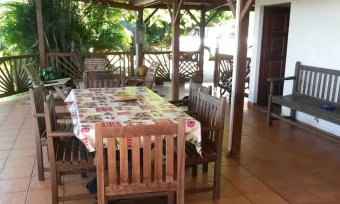 The studio's outdoor area features a lovely terrace equipped with garden furniture where you can enjoy the surroundings of Le Robert. A barbecue is also available for those looking to enhance their meals with an outdoor cooking experience. This rental allows for relaxation and enjoyment of the tropical climate while admiring the majestic mountain views.