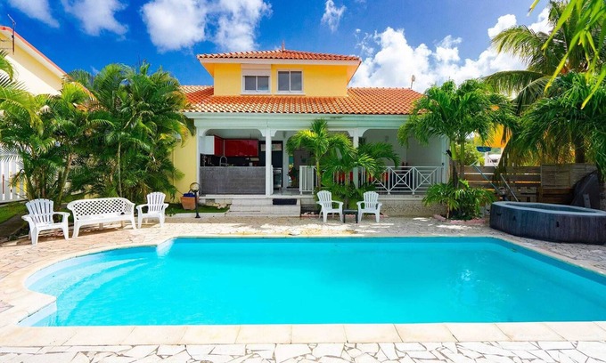 This 7 Bedrooms House provides accommodation with Child Friendly, Kitchen, Pool, for your convenience. This House features many amenities for guests who want to stay for a few days, a weekend or probably a longer vacation with family, friends or group. This House is less than 1 km from Sainte-Anne, and gives visitors the opportunity to explore it. The rental House has 7 Bedrooms and 5 Bathrooms to make you feel right at home.