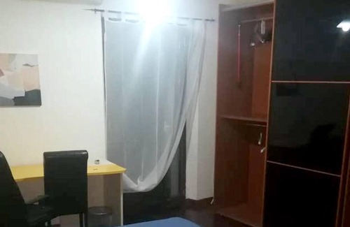 The apartment features air conditionning, a washing machine, a desk and cleaning products.