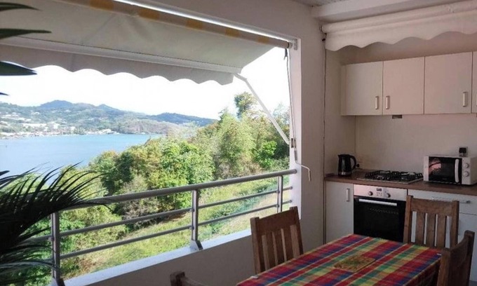 Experience a charming studio apartment perfect for two guests, located in La Trinité with breathtaking views of the sea and mountains. This 40 m² accommodation promises a comfortable and relaxing getaway.