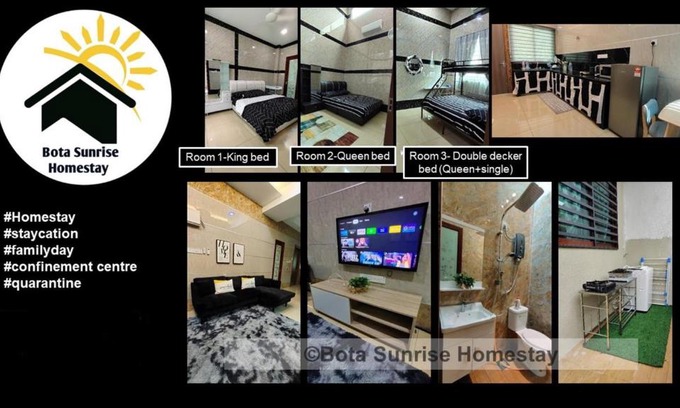 Featuring a garden, Homestay Bota Sunrise offers accommodations in Kampung Bota Kiri. This vacation home features free private parking, a shared kitchen, and free Wifi. The accommodation provides a mini-market and a shared lounge for guests. The air-conditioned vacation home consists of 3 bedrooms, a living room, a fully equipped kitchen with an oven and a kettle, and 2 bathrooms with a shower and a hair dryer. A flat-screen TV with streaming services is available. The accommodation is non-smoking. AEON Mall Ipoh Station 18 is 28 miles from the vacation home, while PHL Convention Centre is 30 miles from the property. Sultan Azlan Shah Airport is 30 miles away.