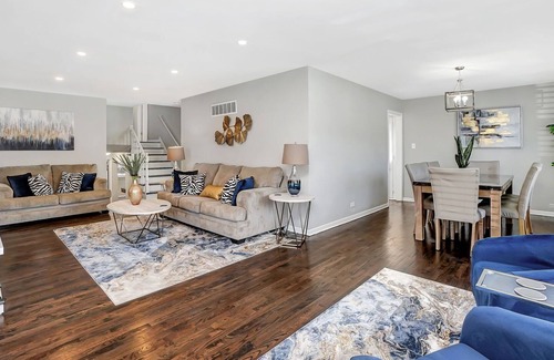 2250 SF renovated unit in the South suburbs, and only 30 minutes south of Downtown Chicago! This property has 5 bedrooms, & 2.5 bathrooms. Master bedroom has a KING, 4 bedrooms have a Queen The living room has room for 1 air mattress (Total of 6 beds). Plenty of Kitchen utensils, all you need in a kitchen, including cooking spices and oils! Children friendly & lots of technology!