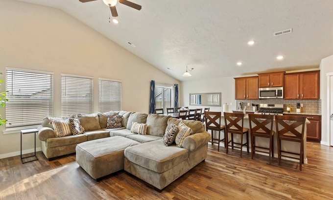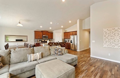 In the beautiful, safe walkable community of Star, Idaho! Feel welcomed in our wonderfully designed, new construction home with a fun refreshed style close to everything. 5 minutes walk to Albertsons with Starbucks, 20-minute walk to downtown Star, and very close to grocery/liquor stores, shopping, hospitals, and lots of entertainment. You will truly feel at your home away from home!
