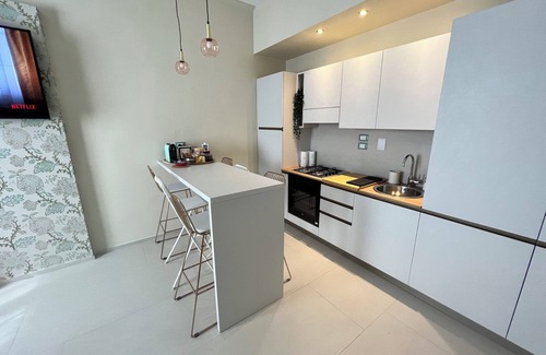 Gemini One consists of a large living room equipped with a 55-inch Smart TV, a full kitchen, two double bedrooms also equipped with Smart TVs & a marble bathroom with glass shower.