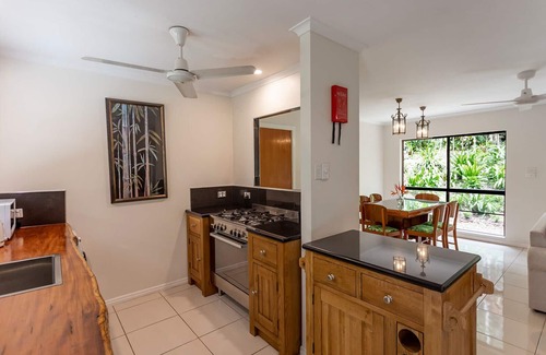 We offer guests a quiet retreat in a comfortable two bedroom house on 5 acres of tropical gardens and rainforest.