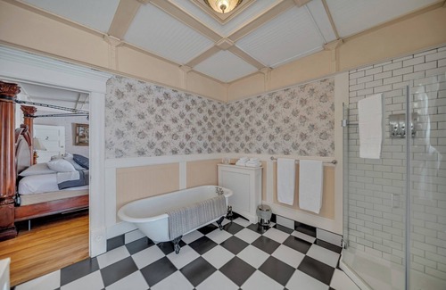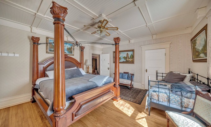 The Honeymoon Suite at Marmora and Lake Inn is an inviting and luxurious retreat, designed with romance and relaxation in mind. The suite features a spacious and comfortable day bed, perfect for lounging or enjoying a quiet moment together. The ensuite bathroom is elegantly appointed, featuring a classic clawfoot tub, offering a touch of vintage charm and an ideal spot for a soothing soak.