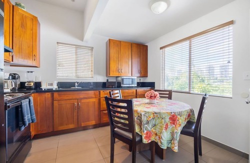 Enjoy a breezy open layout, furnished courtyard with chairs, and a full kitchen for preparing meals at home. After a day exploring Oahu’s beaches, hiking trails, or downtown Honolulu, relax with your group in comfort.