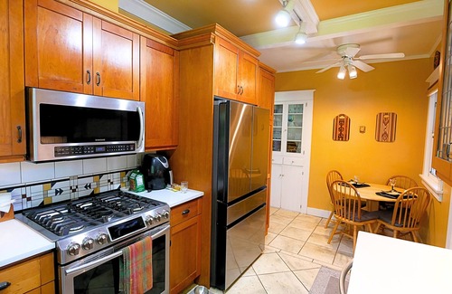 Enchanting 1920’s Cottage with Mt. Adams and Columbia River Views available for monthly rentals only. Nestled in the heart of Hood River on the sought-after Oak Street, this beautifully preserved 1920’s cottage offers a serene getaway with breathtaking views of majestic Mt. Adams and a glance of the Columbia River. Step inside and be greeted by the warm glow of original stained-glass windows and the inviting crackle of a wood-burning fireplace, setting the stage for cozy evenings in.