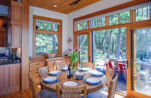 Designed by Vandervort Architects, our home blends sustainability with its natural setting. Placed along the southwest-facing water's edge, surrounded by five acres of Madrona and Fir trees, this home is intentionally designed to take in the breathtaking sunsets and enjoy the abundant wildlife every day! 🌲